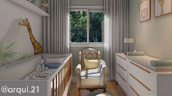 Projeto realizado para um jovem casal na compra de seu primeiro apartamento e na espera de seu primeiro filho. Foi um grande desafio para nosso escritório, pegando o mesmo sem acabamentos de paredes, forros, pisos e mobiliário, numa corrida contra o tempo para a execução e término do mesmo antes da chegada do filho do casal.