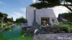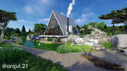 Pensando numa arquitetura com estilo leve, da vida saudável e lazer em meio ao campo. A residência " A " é uma forma arquitetônica atemporal de design simples e elegante com otimização dos espaços e sua vivência. As amplas fachadas em vidro, e os espaços com alturas adequadas dão a esta estrutura uma sensação elegante e de contemporaneidade.