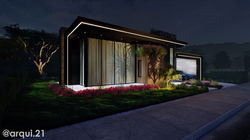 Esta residência inicialmente projetada conforme briefing passado pelo cliente, contendo um living (sala de estar com lareira, jantar e cozinha), dois grandes dormitórios, lavabo, banho social, lavanderia, duas suítes onde os banhos contém cubas duplas, dois chuveiros em cada um deles, e ampla garagem devido ao condomínio possuir uma marina a apenas três lotes do mesmo, tendo a possibilidade de utilização para veículos marítimos.